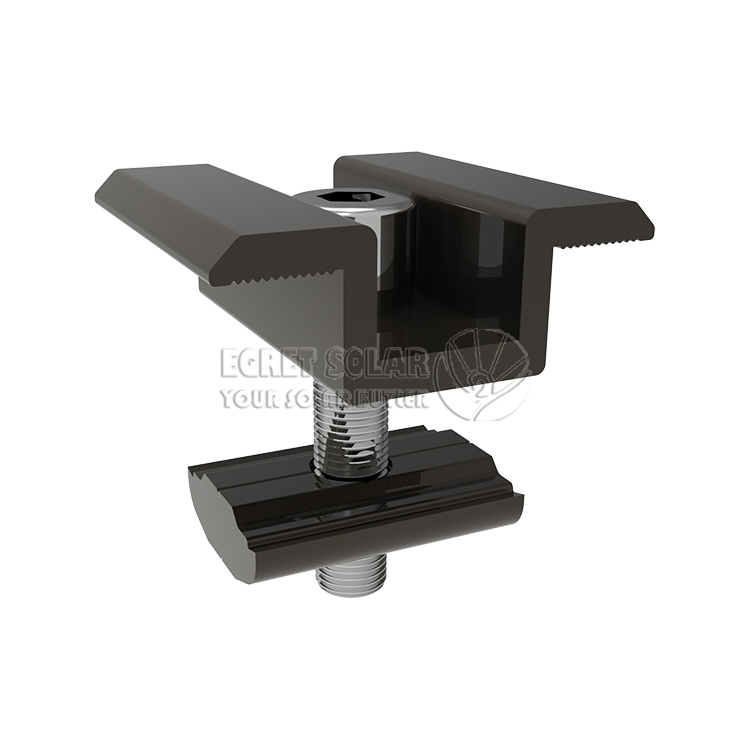 のエンドクランプ のイーグレット・ソーラー中圧ブロックと同様に、コンポーネント フレームの厚さ (通常 30 ~ 40 mm) に適合する必要があります。カスタマイズされたさまざまなエンジニアリングソリューションに従って、陽極酸化アルミニウム合金素材で作られており、コンポーネントフレームの腐食を防ぎ、同時に絶縁の役割を果たします。